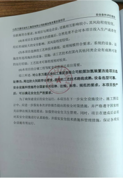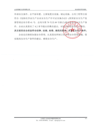 有必要公开的其它内容: 通过对该系统现场的检查、评价,评价组认为该企业目前在安全管理、外部安全条件、总平面布置、主要装置及设施、储运设施、公用工程等方面基本符合《危险化学品生产企业安全生产许可证实施办法》(原国家安全生产监督管理总局令第41号,总局令第79号及89号修订)规定的各项安全生产条件,企业认真落实了8.2章节提出的整改建议,对隐患进行了整改,其目前的安全状态符合法律、法规、标准、规范的要求,具备安全生产条件。 此外企业还应继续加强安全管理,认真落实所制订的各项安全管理措施,落实提高安全生产条件的建议,确保安全生产。 | |||