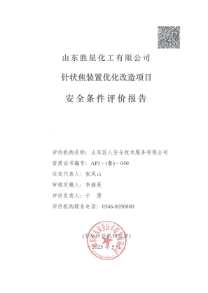 单位名称、项目名称:山东胜星化工有限公司针状焦装置优化改造项目安全条件评价 | |||