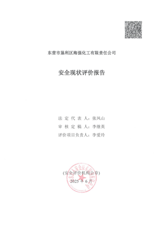 单位名称、项目名称:东营市垦利区海强化工有限责任公司安全现状评价 | |||
