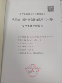 单位名称、项目名称:东营金达化工科技有限公司成品油、燃料油仓储物流项目(一期)安全条件评价 | |||