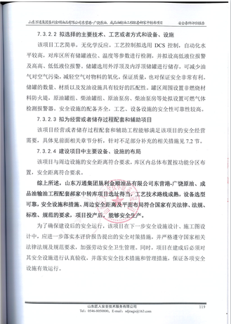 项目简介: 中浩建能源科技(山东)有限公司(以下简称“中浩建”)成立于2020年11月11日,注册资金1.07766亿元,法人代表高杨,住所为山东省东营市东营区史口镇府林路1号,位于东营市东营区化工产业园(山东省第四批化工园区)内,占地面积350余亩。该公司经营范围为一般项目:新兴能源技术研发;化工产品销售等。 中浩建现有员工117人,设有专职安全管理机构—安全部,安全总监1人(注册安全工程师),专职安全员3名,其中1人为注册安全工程师,主要负责人及安全管理人员全部取得了由东营市应急管理局颁发的危险化学品安全生产知识和管理能力考核合格证,均在有效期内。 各1套及配套辅助设施。佳昊化工于2020年11月11日将厂区内生产、储存及公辅工程等所有设施现整体资产变卖给了中浩建,双方已签订“整体资产变卖协议”。 由于佳昊化工已将整体资产变卖给了中浩建,根据《关于印发<山东省危险化学品生产企业安全生产许可证实施细则>的通知》(鲁安监发[2012]55号,鲁安监发[2015]168号修订)第4.2.15条的相关要求,“兼并重组已取得安全生产许可证企业的企业安全生产许可证的申请,应当在取得(变更)工商营业执照或者取得工商核准文件后30个工作日内提出,并提交除4.2.6、4.2.10、4.2.11、4.2.12条规定以外的文件、资料,以及具备资质的中介机构出具的对企业的安全生产条件兼并重组前后变化情况的安全评价报告”。据此,中浩建委托我公司对其开展安全现状评价工作,本次评价为企业安全生产许可证的申请提供技术服务。 | |||