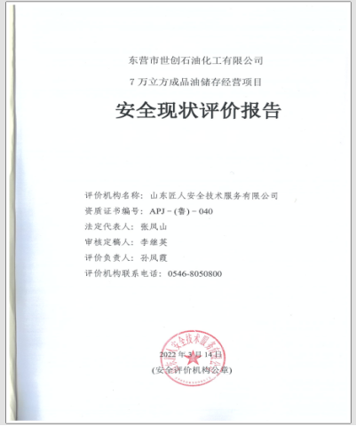 单位名称、项目名称:东营市垦利区玖新工贸有限公司安全现状评价报告 | |||
