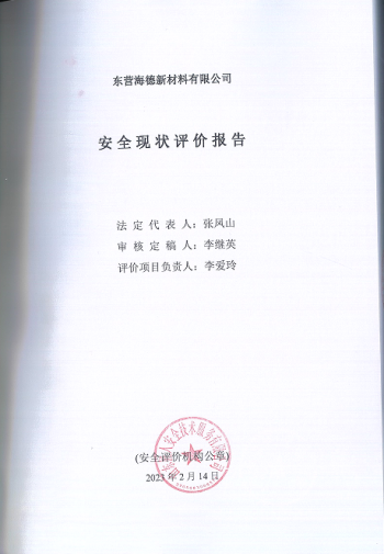 单位名称、项目名称:东营石大胜华新材料有限公司安全现状评价 | |||