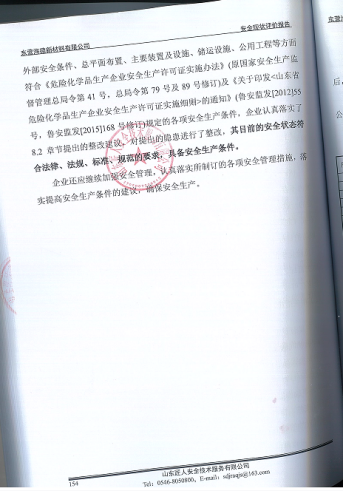 有必要公开的其它内容: 评价过程中通过危险分析辨识出生产系统主要存在的危险、有害因素;通过采用《危险化学品重大危险源辨识》(GB18218-2018)对企业的重大危险源进行了辨识;并采用安全检查表进行了安全分析,找出了企业在安全生产方面存在的安全隐患,并有针对性的提出了整改建议及对策措施建议,并对企业的整改情况进行了复查。 (原国家安全生产监督管理总局令第41号,总局令第79号及89号修订)及《关于印发<山东省危险化学品生产企业安全生产许可证实施细则>的通知》(鲁安监发[2012]55号,鲁安监发[2015]168号修订)规定的各项安全生产条件,企业认真落实了7.2章节提出的整改建议,对提出的隐患进行了整改;东营市润泽新材料有限公司10万吨/年碳氢制冷剂及环保溶剂安全环保综合改造项目选址符合地方规划要求,周边设施防火间距符合要求,工艺技术路线成熟,设备选型可靠,安全设施和措施、平面布局符合国家有关法律、法规、标准、规范的要求,能够安全生产。 企业还要继续加强安全管理,认真落实所制订的各项安全管理措施,落实提高安全生产条件的建议,按照安全标准化要求持续改进,使企业达到国家法律、法规、标准、规范所要求的安全生产条件。