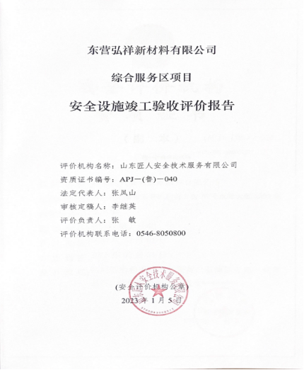 单位名称、项目名称:东营弘祥新材料有限公司综合服务区项目 | |||