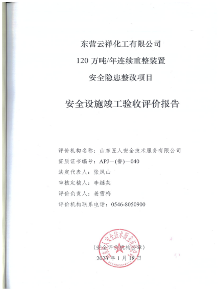 单位名称、项目名称:东营云祥化工有限公司120万吨/年连续重整装置安全隐患整改项目 | |||