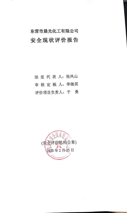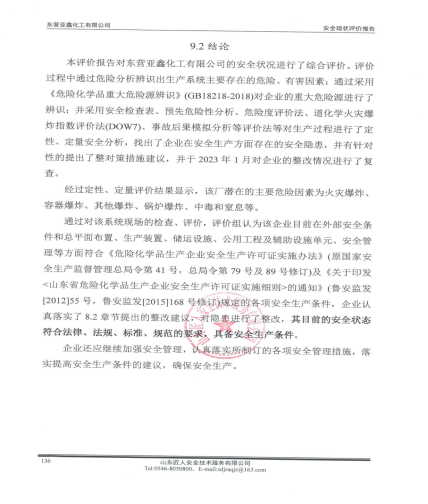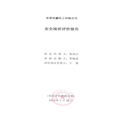 单位名称、项目名称:东营亚鑫化工有限公司安全现状评价报告 | |||