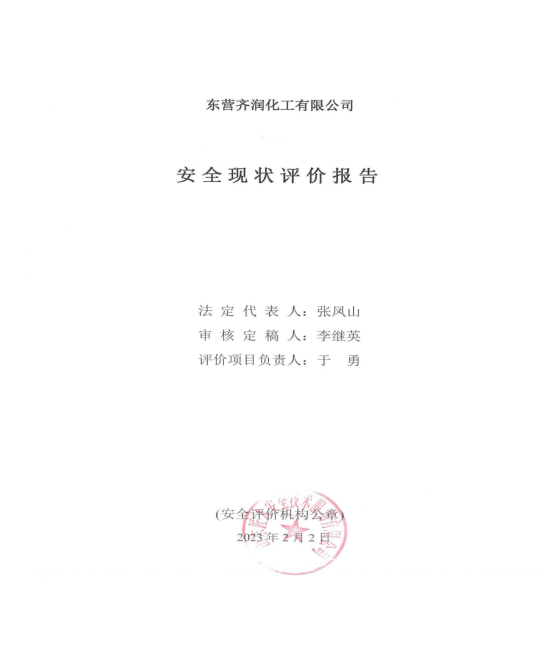 单位名称、项目名称:东营齐润化工有限公司安全现状评价 | |||