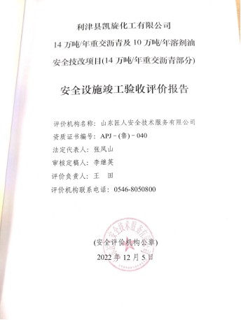 单位名称、项目名称:利津县凯旋化工有限公司14万吨/年重交沥青及10万吨/年溶剂油安全技改项目(14万吨/年重交沥青部分) | |||