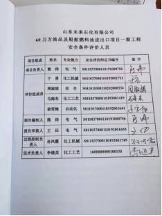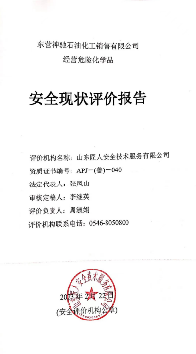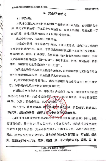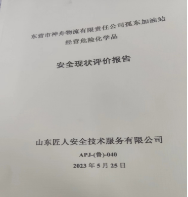 单位名称、项目名称:东营市神舟物流有限责任公司孤东加油站经营危险化学品安全现状评价报告 | |||