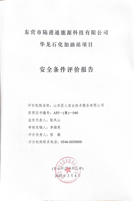单位名称、项目名称:东营市陆港通能源科技有限公司华龙石化加油站项目 | |||