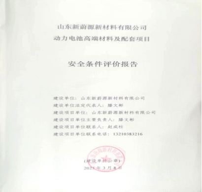 单位名称、项目名称:山东新蔚源新材料有限公司动力电池高端材料及配套项目 | |||