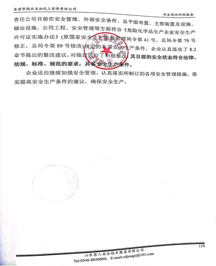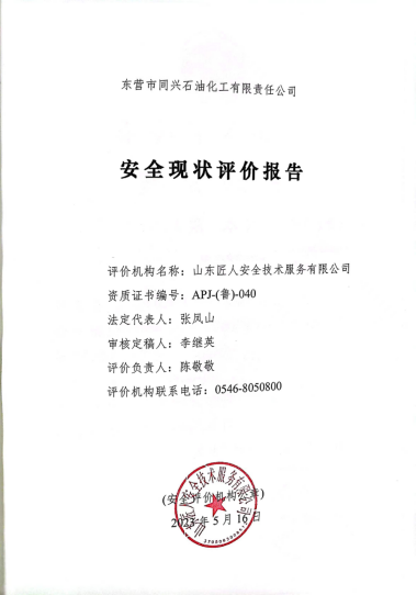 单位名称、项目名称:东营市同兴石油化工有限责任公司安全现状评价 | |||