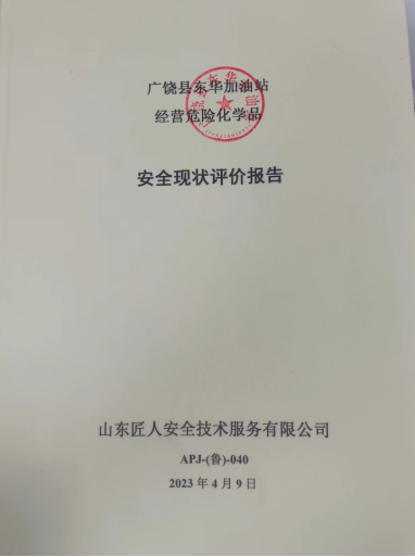 单位名称、项目名称:广饶县东华加油站经营危险化学品安全现状评价报告 | |||