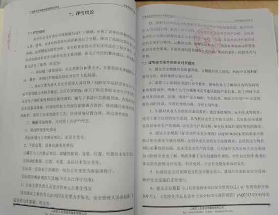 有必要公开的其它内容: 一、该站属二级加油站,火灾类别为B类火灾,主要危险有害因素为火灾、爆炸,本项目不构成危险化学品重大危险源。 二、该站主要负责人及安全管理人员取得了危险化学品经营安全生产知识和管理能力考核合格证,且在有效期内;建立了较完善的安全生产责任制、安全生产规章制度和岗位操作规程,编写了事故应急救援预案,有较齐全的安全设备及设施,对危险性较大的部位能够重点监控,储油罐区能得到有效的防护,采用了合理的操作工艺,经营场所位置合理,周边条件较好。 三、根据现场勘察,并对照上次评价报告。 1、周边环境变化情况 周边环境与上次换证相比,未发生变化。 2、平面布置、设备设施变化情况 ①罐区与上次换证相比,储罐的数量、容量、位置、布置均未发生变化。 ②加油机数量、位置、布置、油品均未发生变化。 ③站房一层营业厅西侧的一间办公室变更为服装销售厅。 ④站房西侧新增洗车设施(不在本次评价范围)。 3、企业主要负责人及安全管理人员变化情况 该加油站主要负责人由刘国东变更为李保光;安全管理人员由赵潇、张超变更为常蒙蒙、焦文杰。 四、根据本次评价安全检查表检查结果和整改情况复查结果,被评价单位A项全部合格,B项1项不合格,定性安全检查表有2项不合格。该站就本评价公司提出的整改建议与本评价公司进行了沟通,目前本次评价报告提出的2项不合格项,已整改完成。根据导则要求,广饶县东华加油站经营条件符合安全要求,目前具备经营和储存车用汽油、柴油的条件,经营形式为零售。
