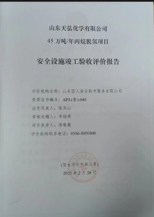 单位名称、项目名称:东营市晟和化工有限公司C6+馏分油脱氢生产配套罐区安全设施竣工验收评价 | |||