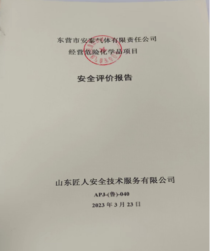 单位名称、项目名称:东营市安泰气体有限责任公司经营危险化学品项目安全现状评价报告 | |||
