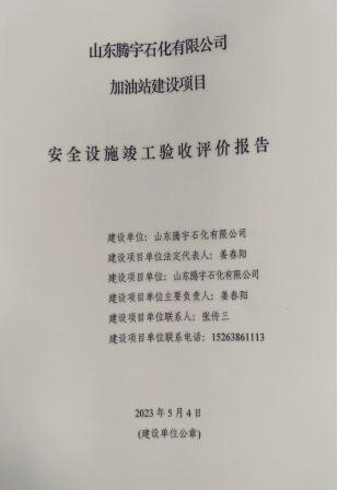 单位名称、项目名称:山东腾宇石化有限公司加油站建设项目安全设施竣工验收评价报告 | |||