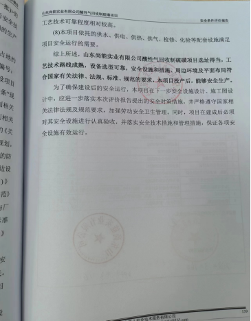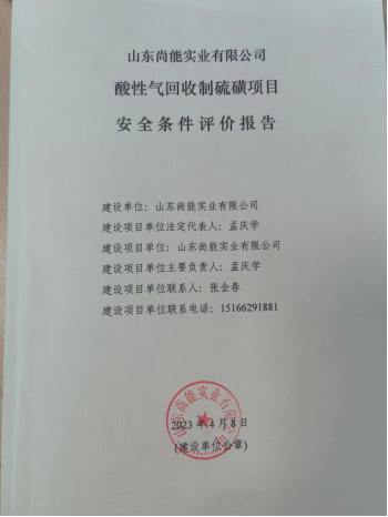 单位名称、项目名称:山东尚能实业有限公司酸性气回收制硫磺项目安全条件评价 | |||