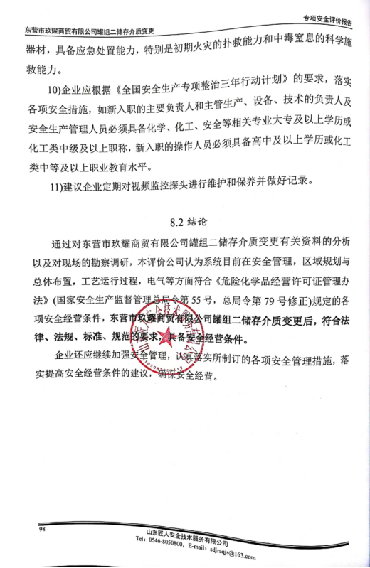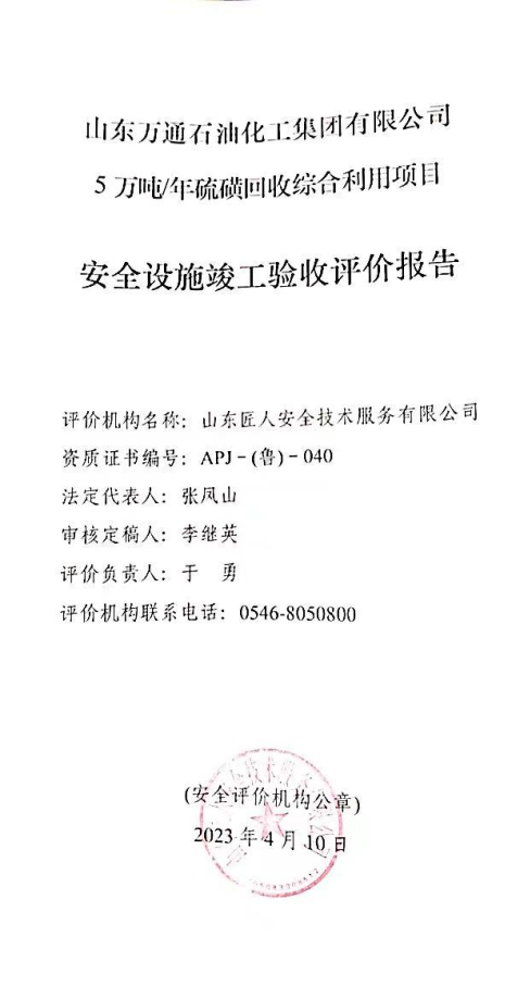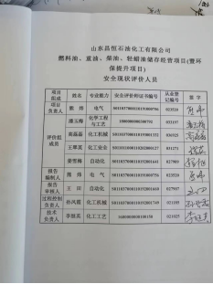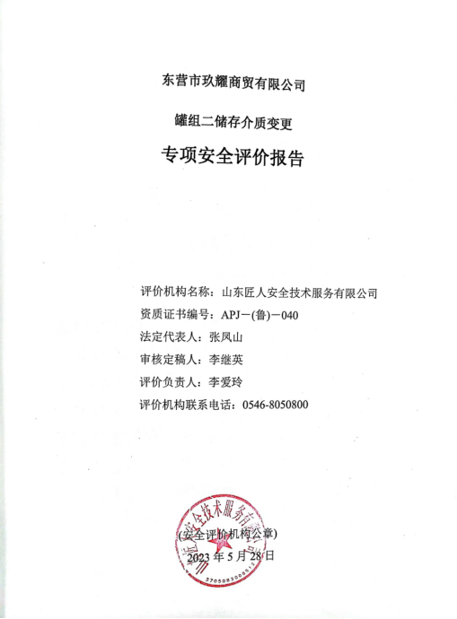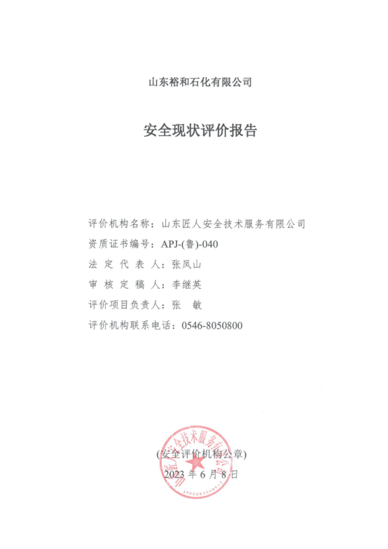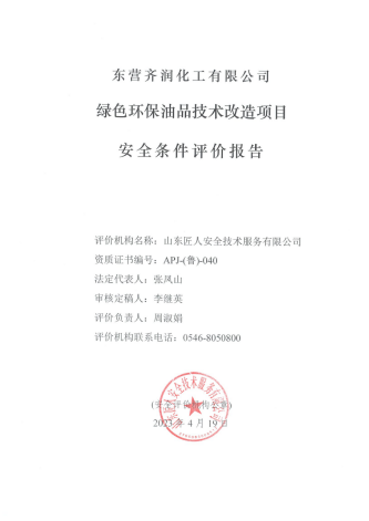 单位名称、项目名称:东营齐润化工有限公司绿色环保油品技术改造项目安全条件评价报告 | |||