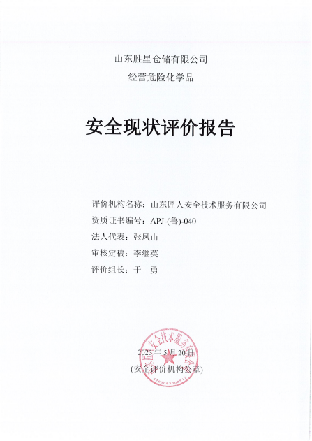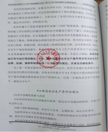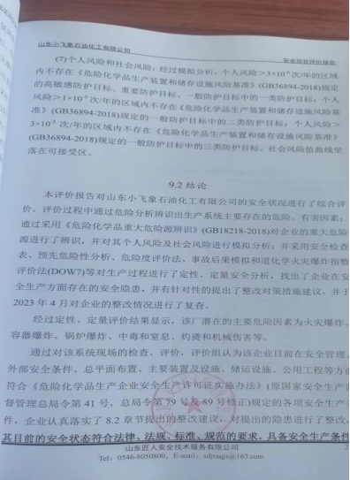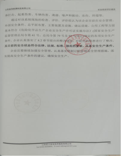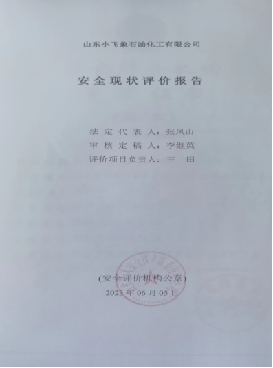 单位名称、项目名称:山东小飞象石油化工有限公司安全现状评价报告 | |||