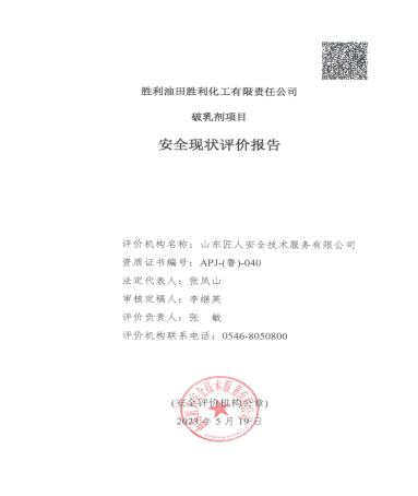 单位名称、项目名称:胜利油田胜利化工有限责任公司破乳剂项目 | |||
