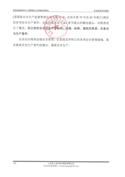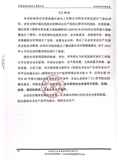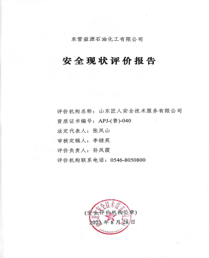 单位名称、项目名称:东营益源石油化工有限公司安全现状评价 | |||