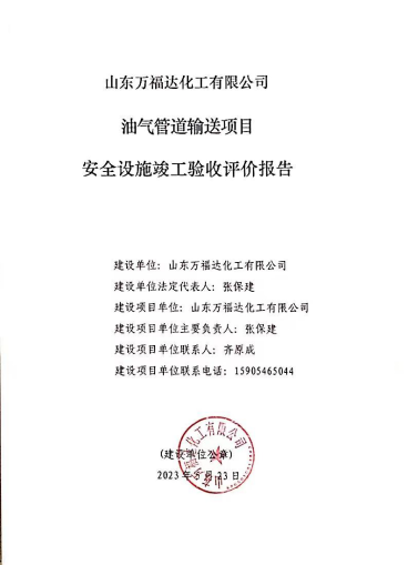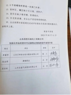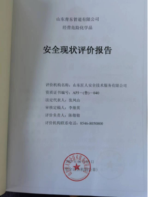 单位名称、项目名称:山东青东管道有限公司经营危险化学品安全现状评价 | |||