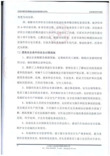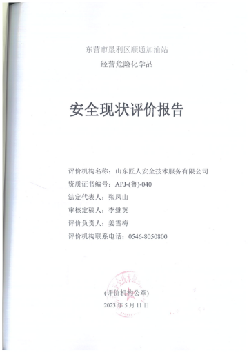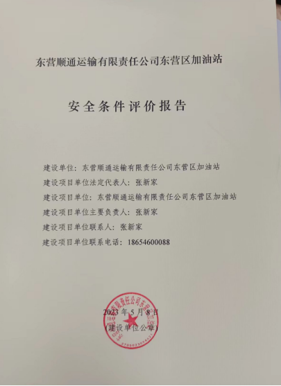 单位名称、项目名称:东营顺通运输有限责任公司东营区加油站安全条件评价报告 | |||