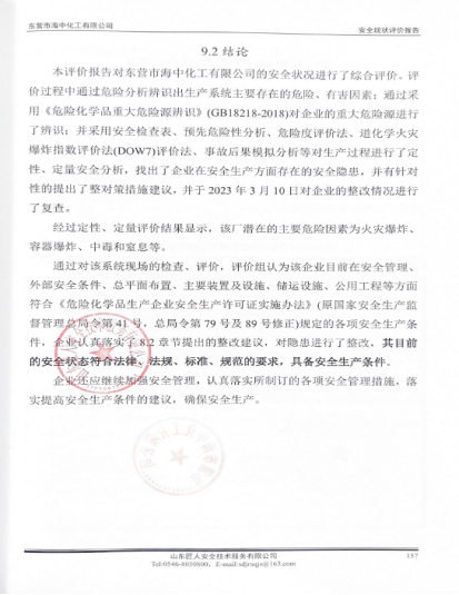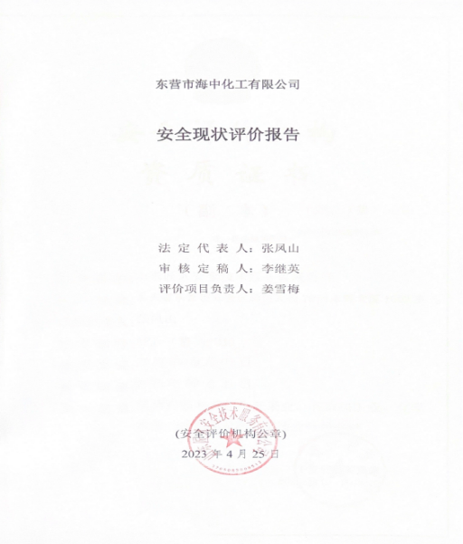 单位名称、项目名称:东营市海中化工有限公司安全现状 | |||