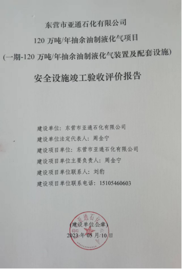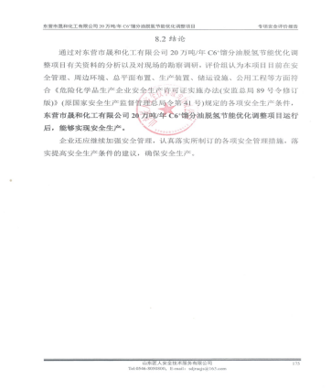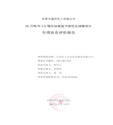 单位名称、项目名称:东营市俊源石油技术开发有限公司20万吨/年特种高纯白油深加工改建项目安全条件评价 | |||