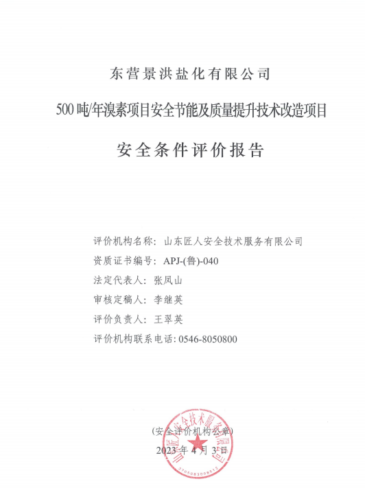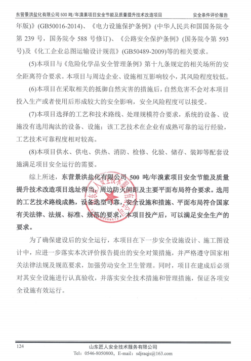 单位名称、项目名称:东营景洪盐化有限公司500吨/年溴素项目安全节能及质量提升技术改造项目 | |||