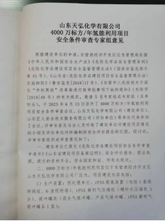 单位名称、项目名称: 山东天弘化学有限公司4000万标方/年氢能利用项目 | |||