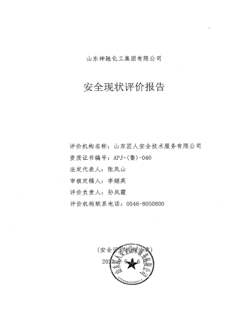 单位名称、项目名称:山东神驰化工集团有限公司安全现状评价 | |||