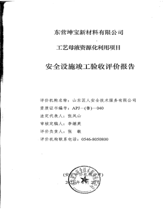 单位名称、项目名称:东营坤宝新材料有限公司工艺母液资源化利用项目 | |||