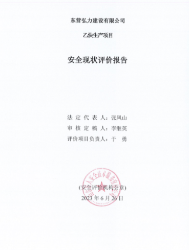 单位名称、项目名称:东营弘力建设有限公司乙炔生产项目 | |||