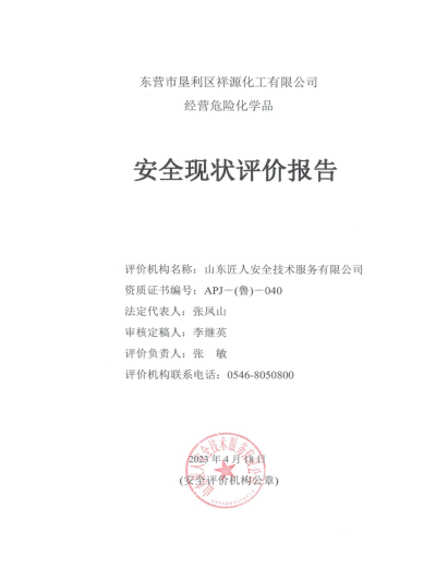 单位名称、项目名称:东营市垦利区祥源化工有限公司经营危险化学品 | |||
