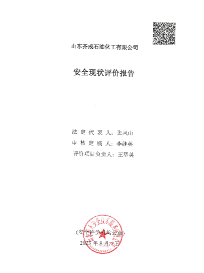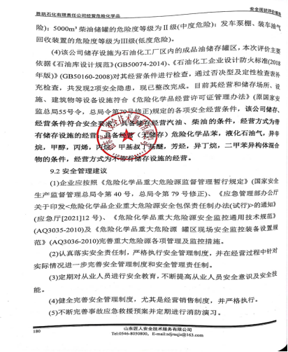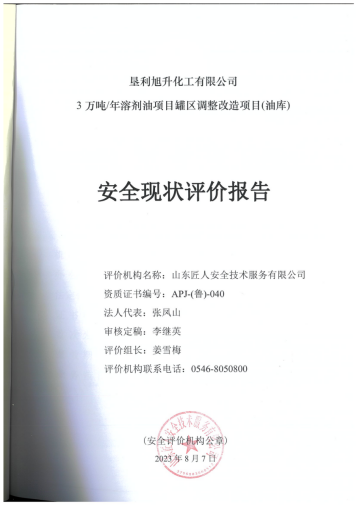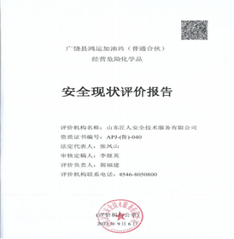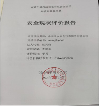单位名称、项目名称:山东汇盈石油化工有限责任公司经营危险化学品安全现状评价报告 | |||