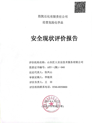 单位名称、项目名称:胜凯石化有限责任公司经营危险化学品安全现状评价 | |||