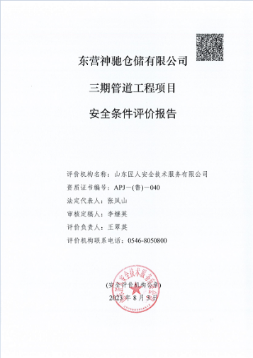单位名称、项目名称:东营神驰仓储有限公司三期管道工程项目 | |||
