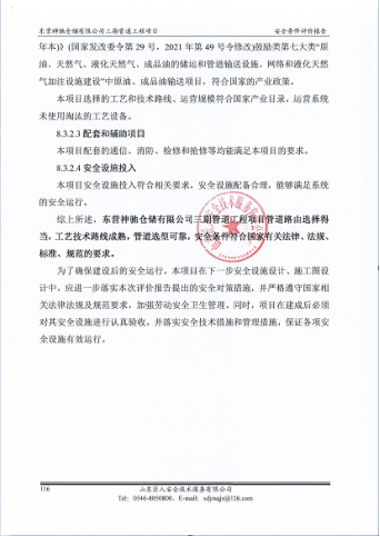 有必要公开的其它内容: (1)本评价项目未列入发改委《产业结构调整指导目录》(2019年本)中淘汰类及限制类之列。本项目于2023年8月1日取得山东省建设项目备案证明,项目代码:2308-370502-07-02-624059。 (2)本项目未使用国家淘汰或禁止的工艺和设备,满足《应急管理部办公厅关于印发<淘汰落后危险化学品安全生产工艺技术设备目录(第一批)>的通知》(应急厅[2020]38号)要求。 (3) 本项目在神驰化工厂区内进行建设,不新增用地,项目所在地已取得国有土地使用证,证书编号:东国用(2013)第01-2631号,符合当地政府的产业政策和规划。另外根据《山东省人民政府办公厅关于公布第四批化工园区和专业化工园区名单的通知》(鲁政办字[2019]113号)可知,山东神驰化工集团有限公司位于东营市东营区化工产业园内,符合园区规划要求。 (4)本项目与厂外周边设施间的防火间距符合《石油化工企业设计防火标准(2018年版)》(GB50160-2008)、《石油化工工厂布置设计规范》(GB50984-2014) 、《汽车加油加气加氢站技术标准》(GB50156-2021)、《石油天然气工程设计防火规范》(GB50183-2004)等相关标准的要求。 (5)本项目与《危险化学品安全管理条例》第十九条规定的相关场所的安全距离符合要求。本项目与周边企业、设施相互影响较小,其风险程度较低。 (6)本项目在采取相关的抵御自然灾害的措施后,自然危害不会对本项目投入生产或者使用后形成较大的安全影响,安全风险程度可以接受。 (7)本项目选择的工艺和技术路线、处理规模符合要求,系统的设备、设施没有选用淘汰的设备、设施;该工艺技术在企业有成熟可靠的运行经验,工艺技术可靠程度相对较高。 (8)本项目供水、供电、供热、供气、检修、化验等配套设施满足项目安全运行的需要。 综上所述,山东神驰化工集团有限公司废气综合治理碳减排项目选址得当,周边防火间距符合要求。选用的工艺技术路线成熟,设备选型可靠,安全设施和措施、平面布局符合国家有关法律、法规、标准、规范的要求,本项目采取必要的安全措施后投产,可以满足安全生产的要求。 为了确保建设后的安全运行,本项目在下一步安全设施设计、施工图设计中,应进一步落实本次评价报告提出的安全对策措施,并严格遵守国家相关法律法规及规范要求,加强劳动安全卫生管理。同时,项目在建成后必须对其安全设施进行认真验收,并落实安全技术措施和管理措施,保证各项安全设施有效运行。