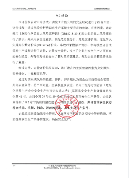 单位名称、项目名称:山东万通石油化工集团有限公司安全现状评价报告 | |||