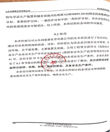 单位名称、项目名称:山东润泰新化学有限公司 | |||
