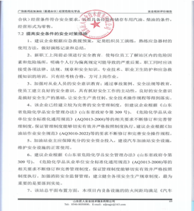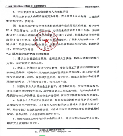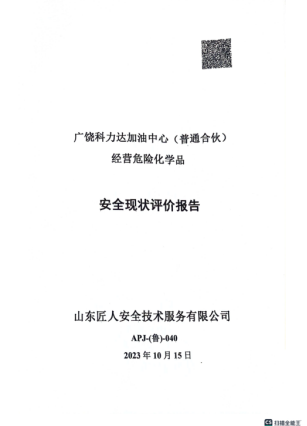 单位名称、项目名称:广饶科力达加油中心经营危险化学品安全现状评价报告 | |||