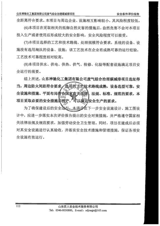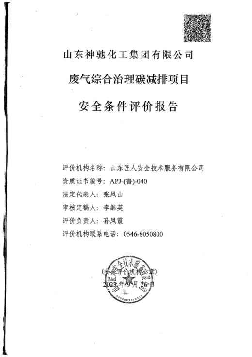 单位名称、项目名称:山东神驰化工集团有限公司废气综合治理碳减排项目安全条件评价报告 | |||