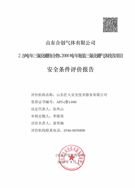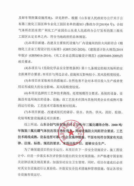 单位名称、项目名称:山东合创气体有限公司2万吨/年三氟化硼络合物、2000吨/年瓶装三氟化硼气体技改项目 | |||