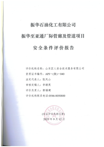 单位名称、项目名称:振华石油化工有限公司振华至亚通厂际管廊及管道项目 | |||