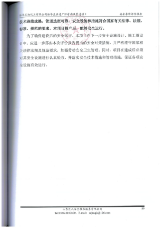 (1)通过预先危险性分析可知:火灾、爆炸、其他爆炸(压力管道爆炸)、中毒和窒息的危险等级为Ⅳ-Ⅲ级;触电、高处坠落、物体打击、坍塌的危险等级Ⅲ-Ⅱ级。 (2)根据安全检查表评价结果:本次评价共检查了73项,通过检查表法检查发现项目申请报告中未提及项有19项,约占总检查项的26%;符合项54项,约占总检查项74%。 (3)经计算可知,本项目管道泄漏发生泄漏的多米诺半径为28m。 1评价结果 新建管廊起点为振华石油化工有限公司北侧管廊接口,管廊由振华厂区管道接点接出后向东50米后向北转角72°继续走170米,途中在24米处跨越海港路。之后向西转角90°继续行走100米,后向北转角83°继续行走330米,之后向东转角90°继续行走287米,之后向北转角90°行走13米后接入亚通接点。 新建管道自振华石油化工有限公司北侧管廊接口,沿新建管廊接至亚通厂区内各个节点。 2拟选择的主要技术、工艺或者方式和设备、设施 本项目拟采用的工艺成熟、设备可靠,不使用国家明令淘汰、禁止使用的工艺、设备,根据《产业结构调整指导目录(2019年本,第49号令修订)》,振华至亚通厂际管廊及管道项目不属于其中限制类及淘汰类建设项目,本项目未生产、使用国家明令禁止的危险化学品,未采用和使用应急厅[2020]38号明令限制、禁止使用的工艺、设备。根据《山东省人民政府办公厅关于加强“两高”项目管理的通知》(鲁政办字[2021]57号)中“两高”项目管理目录清单、《关于印发山东省“两高”项目管理目录的通知》(鲁发改工业[2021]487号)和《关于“两高”项目管理有关事项的补充通知》(鲁发改工业[2023]34号),本项目不属于“两高一资”项目,符合国家产业政策。 本项目选择的工艺和技术路线、运营规模符合国家产业目录,运营系统未使用淘汰的工艺设备; 3配套和辅助项目 本项目配套的通信、消防、检修和抢修等均能满足本项目的要求。 4安全设施投入 本项目安全设施投入符合相关要求,安全设施配备合理,能够满足系统的安全运行。 综上所述,振华石油化工有限公司振华至亚通厂际管廊及管道项目工艺技术路线成熟,管道选型可靠,安全设施和措施符合国家有关法律、法规、标准、规范的要求,本项目投产后,能够安全运行。 为了确保建设后的安全运行,本项目在下一步安全设施设计、施工图设计中,应进一步落实本次评价报告提出的安全对策措施,并严格遵守国家相关法律法规及规范要求,加强劳动安全卫生管理。同时,项目在建成后必须对其安全设施进行认真验收,并落实安全技术措施和管理措施,保证各项安全设施有效运行。 | |||