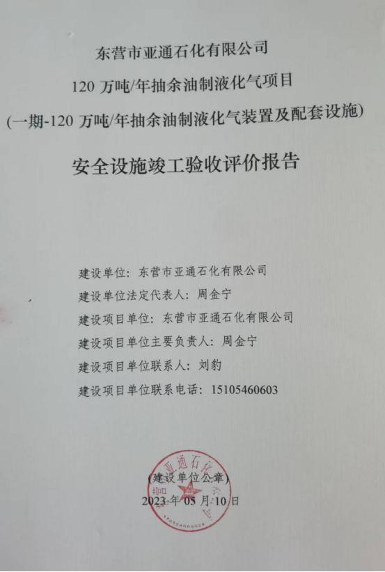 单位名称、项目名称:东营市亚通石化有限公司120万吨/年抽余油制液化气项目(一期-120万吨/年抽余油制液化气装置及配套设施) | |||